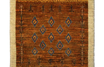 ベージュのベースにカラフルなボーダー柄を織り込んで、華やかな雰囲気のギャッベ。カシュガイ族独特の文様をお楽しみくださ…