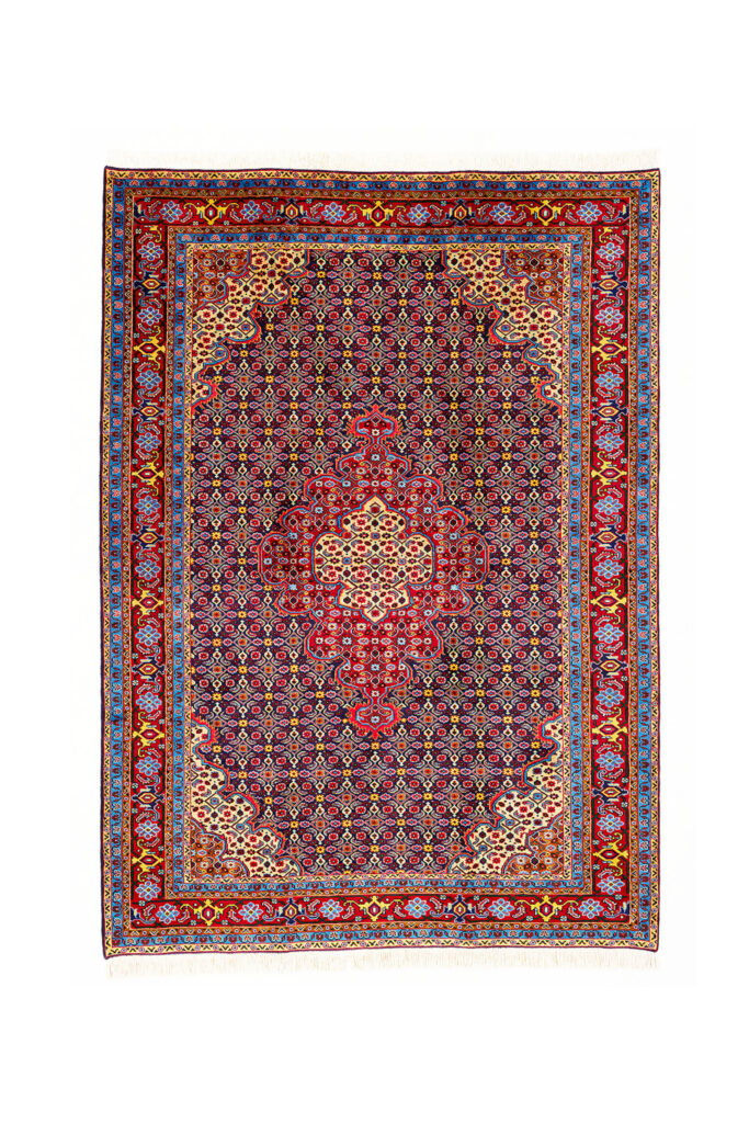 イラン北西部の歴史のある都市で製作された絨毯で、有名なアルダビール絨毯はペルシャ絨毯の中でも最高級品とされています。メダリオン紋様の落ち着いたデザインで、汚れに強く堅牢度も高いのでリビングや和室にもご使用できます。